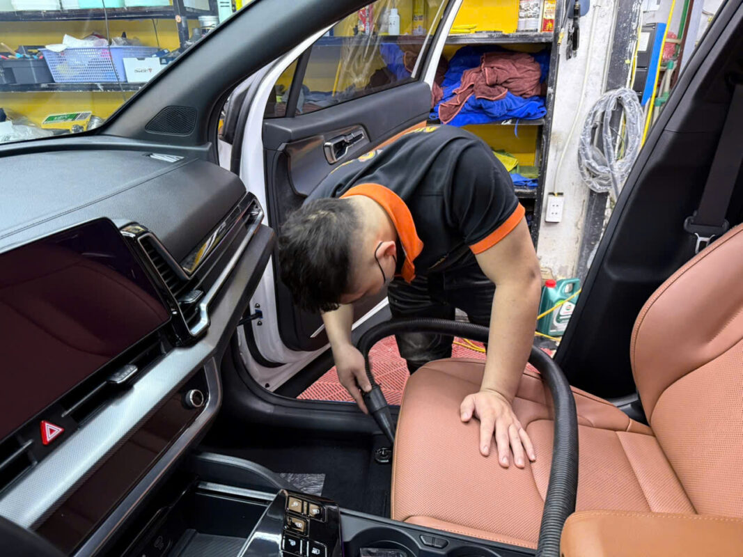 Làm sạch sàn xe, ghế, taplo và các chi tiết bên trong.